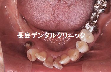 骨が吸収してしています。下顎の奥歯では神経までの骨の厚みが重要