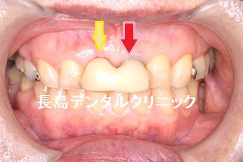 のままアバット(土台)を取り付け仮歯をつけました。そのあと左右