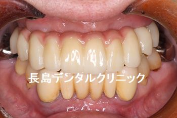 「上顎すべての歯を抜歯しインプラントで固定式のブリッジを装着す