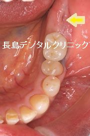 黄色い矢印の部分にインプラントを1本埋入します。
