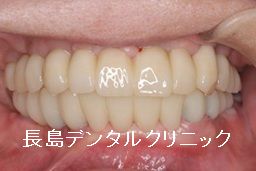 現在は上顎はジルコニアで製作されたインプラントブリッジが装着さ
